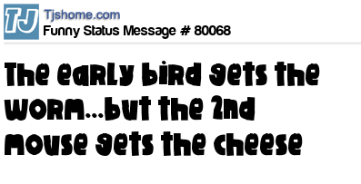 - # 333 It may be the early bird that gets the worm. But it?s the second mouse that gets the cheese.