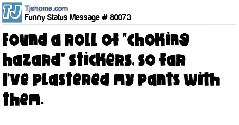 X Found a roll of "choking hazard" stickers, so far I've plastered my pants with them.