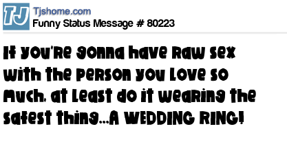X says If you're gonna have raw sex with the person you love so much, at least do it wearing the safest thing...A WEDDING RING!