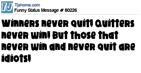 X says Winners never quit! Quitters never win! But those that never win and never quit are idiots!