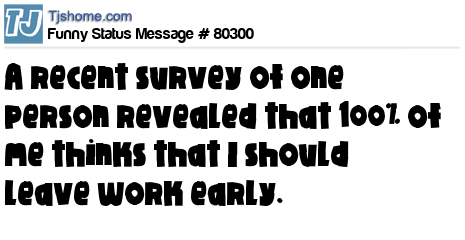 - # 140356 A recent survey of one person reveals that 100% of me thinks I should leave work early.
