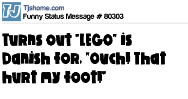 X  Turns out "LEGO" is Danish for, "Ouch! That hurt my foot!"
