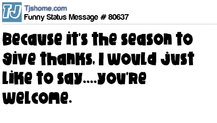 X says Because it's the season to give thanks, I would just like to say....you're welcome.