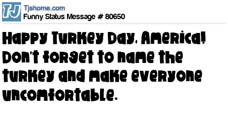 X Happy Turkey Day, America! Don't forget to name the turkey and make everyone uncomfortable.