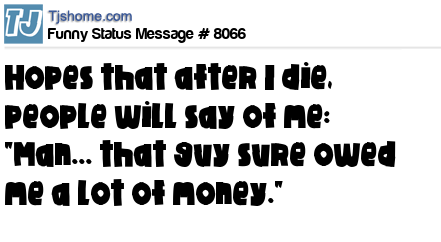 X hopes that after I die, people will say of me: "Man... that guy sure owed me a lot of money."
