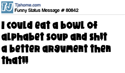 - # 58397 Sometime I look at people and think, "I could eat a bowl of alphabet soup and sh!t a better argument than that"
