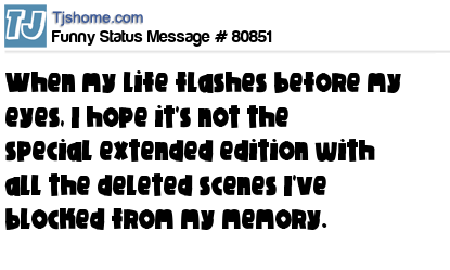 - # 103285 If my life flashes before my eyes, I hope it's not the special edition with all the deleted scenes I've blocked from my memory.