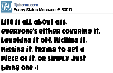 - # 74743 life is all about ass. You're either covering it, laughing it off, kicking it, kissing it, busting it or trying to get a piece of it.