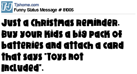 X Just a Christmas reminder. Buy your kids a big pack of batteries and attach a card that says "Toys not Included".