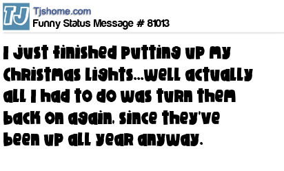 - # 173274 I think it's time I go outside and pretend I'm putting up Christmas lights I never took down from last year.