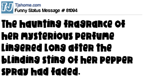 X is The haunting fragrance of her mysterious perfume lingered long after the blinding sting of her pepper spray had faded.