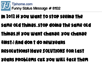 X says In 2012 if you want to stop seeing the same old things..stop doing the same old things.If you want change, you change first;) And don t do newyears resolutions! Have SOLUTIONS for last years problems cuz you will face them again.