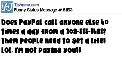 X does PayPal call anyone else 40 times a day from a 208-515-7481? Them people need to get a life! LOL, I'm not paying you!!