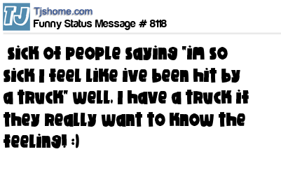 X is sick of people saying "im so sick I feel like ive been hit by a truck" well, I have a truck if they really want to know the feeling! :)