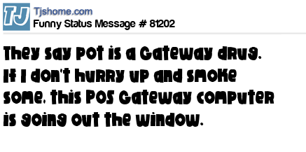 X is They say pot is a Gateway drug. If I don't hurry up and smoke some, this POS Gateway computer is going out the window.
