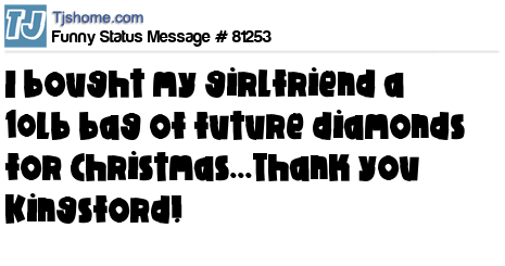 X I bought my girlfriend a 10lb bag of future diamonds for Christmas...Thank you Kingsford!