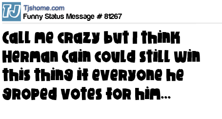 - # 75924 I would totally vote for Herman Cain but only if he introduces himself at the next debate by singing, "Here I am!! Rock you like a Herman Cain!! "