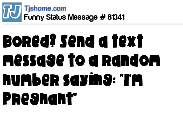 - # 116663 Bored? Send a text message to a random number saying: "Im Pregnant