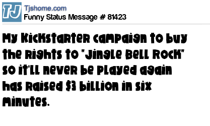 X My Kickstarter campaign to buy the rights to "Jingle Bell Rock" so it'll never be played again has raised $3 billion in six minutes.