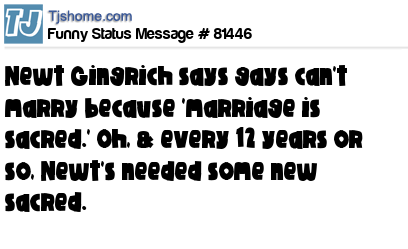X Newt Gingrich says gays can't marry because 'marriage is sacred.' Oh, & every 12 years or so, Newt's needed some new sacred.