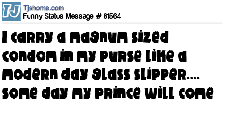 X I carry a magnum sized condom in my purse like a modern day glass slipper.... some day my prince will come
