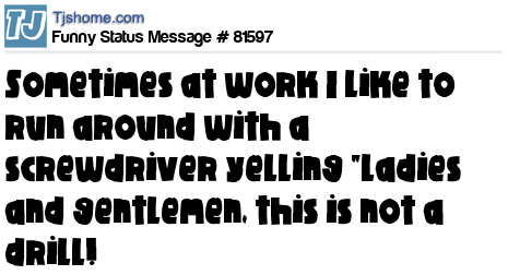 - # 62176 Sometimes I like to go to the hardware store and run around with a screwdriver shouting, "Ladies and gentlemen, this is not a drill!"