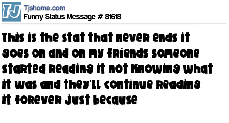 - # 32340 (SINGS) this is the Song that Never ends.. it just goes on and on my friend.. Some ppl started singing it not knowing what it was, & they'll continue singing it 4ever just because... LOL!! Bet your singing it now too! YW!