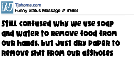 X says Still confused why we use soap and water to remove food from our hands, but just dry paper to remove sh!t from our a$$holes
