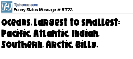 X says Oceans, largest to smallest: Pacific, Atlantic, Indian, Southern, Arctic, Billy.