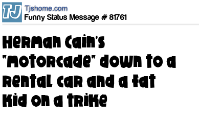 X Herman Cain's "motorcade" down to a rental car and a fat kid on a trike