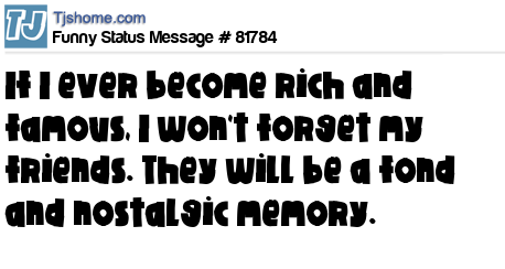 X If I ever become rich and famous, I won't forget my friends. They will be a fond and nostalgic memory.