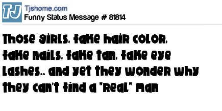 - # 53398 fake hair color, fake nails, fake tan, fake eye lashes.. and yet they wonder why they can't find a "real" man!!!
