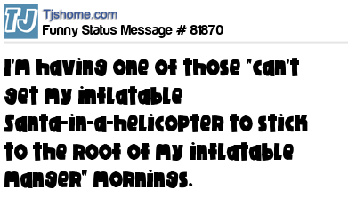 X I'm having one of those "can't get my inflatable Santa-in-a-helicopter to stick to the roof of my inflatable manger" mornings.