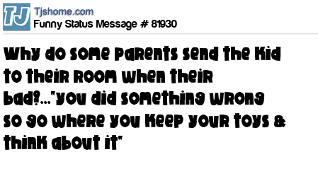 X says why do some parents send the kid to their room when their bad?..."you did something wrong so go where you keep your toys & think about it"
