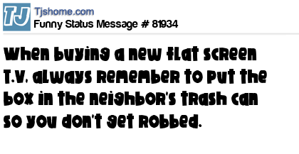 - # 71691 When buying a flat screen tv, always remember to put the box in your neighbor's trash so you don't get robbed.