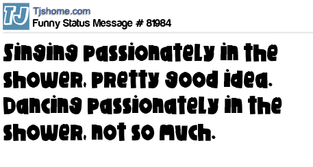 - # 49060 Singing passionately in the shower: Pretty good idea. Dancing passionately in the shower: Not so much.