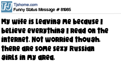 X My wife is leaving me because I believe everything I read on the internet. Not worried though, there are some sexy Russian girls in my area.