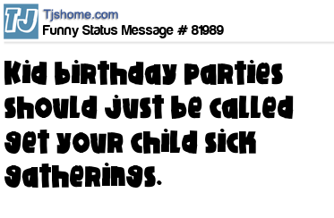 X  Kid birthday parties should just be called get your child sick gatherings.