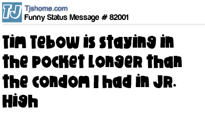 X Tim Tebow is staying in the pocket longer than the condom I had in Jr. High