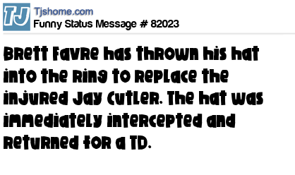 X Brett Favre has thrown his hat into the ring to replace the injured Jay Cutler. The hat was immediately intercepted and returned for a TD.