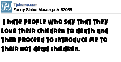 X I hate people who say that they love their children to death and then proceed to introduce me to their not dead children.