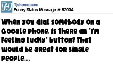 - # 20261 When you dial somebody on a Google phone, is there an "I'm Feeling Lucky" button? That would be great for single people.