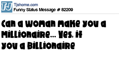 - # 138232 Can a woman make you a millionaire? Yes. But only if you are a billionaire.
