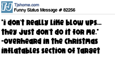 X says "i don't really like blow ups... they just don't do it for me." -overheard in the Christmas inflatables section of Target