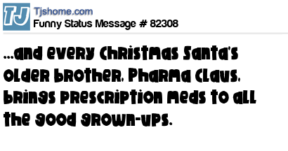 X ...and every Christmas Santa's older brother, Pharma Claus, brings prescription meds to all the good grown-ups.