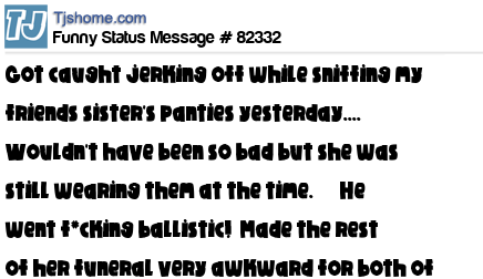X Got caught jerking off while sniffing my friends sister's panties yesterday.... Wouldn't have been so bad but she was still wearing them at the time. He went f*cking ballistic! Made the rest of her funeral very awkward for both of us.