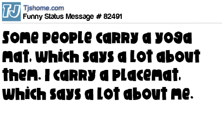 X Some people carry a yoga mat, which says a lot about them. I carry a placemat, which says a lot about me.