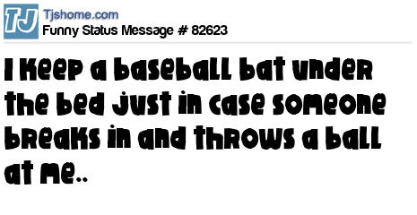 - # 87353 I always keep a baseball bat under my bed, just in case someone breaks into the house and throws a ball at me.