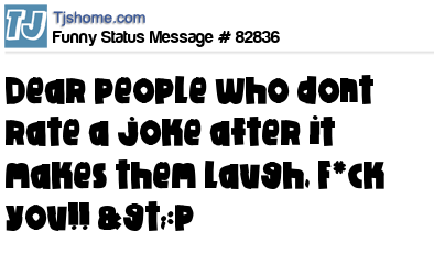 X is Dear people who dont rate a joke after it makes them laugh, F*ck you!! >:p