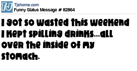 X says I got so wasted this weekend I kept spilling drinks...all over the inside of my stomach.